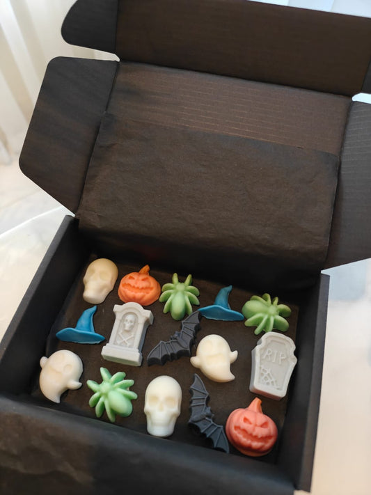Discover our Spooky Sparkle mixed boxes filled with ghosts, skulls, bats, and pumpkins; or our Ghost Boxes for something hauntingly simple and elegant. Don’t miss the mini Pillow Boxes of Skulls, available in black and white, perfect for gifting or a touch of gothic charm.