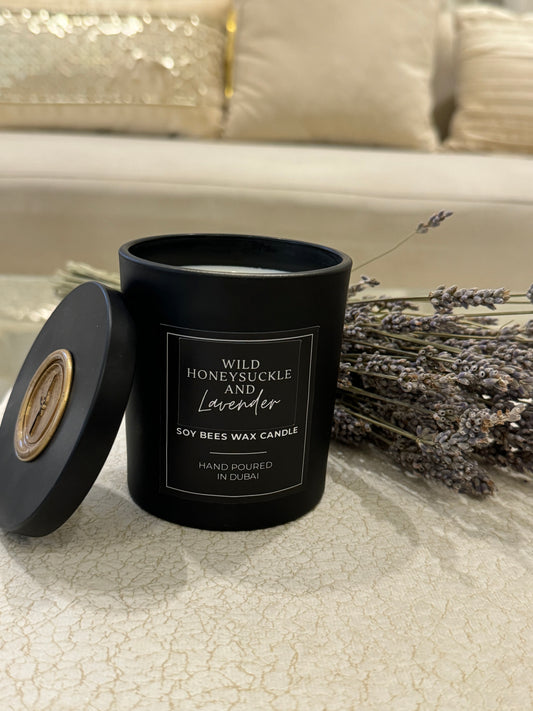 Wild Honeysuckle and Lavender - 8oz Black Glass Candle