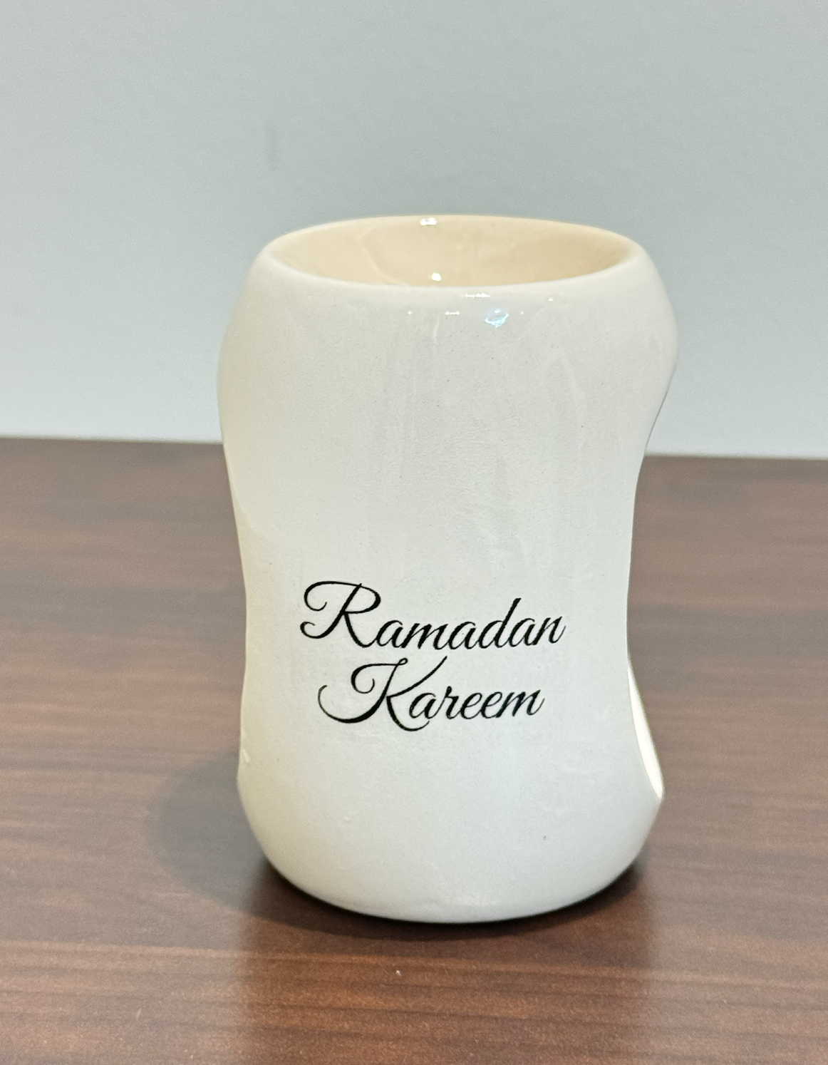 🌙 1 elegant white ceramic burner with coloured top featuring "Ramadan Kareem" on one side.
