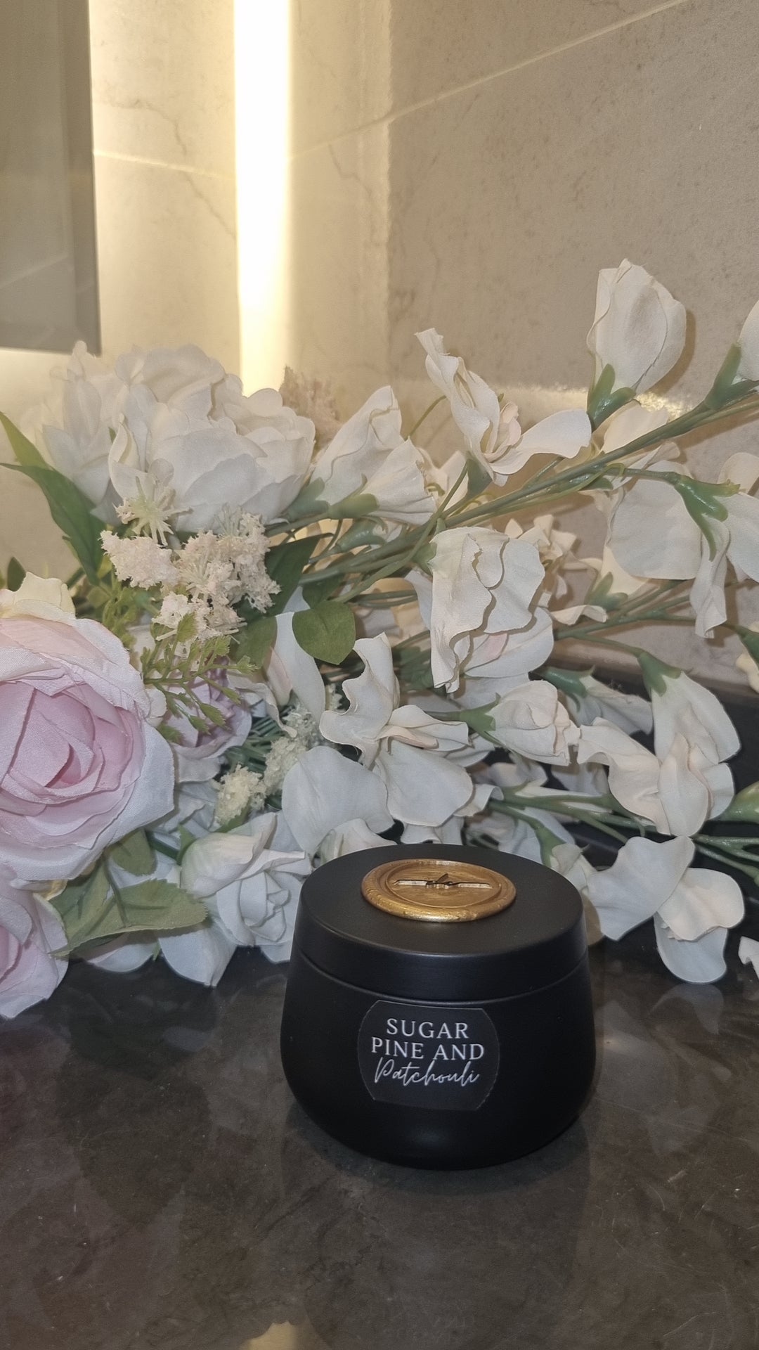 Available in Black with our signature wax seal these have a burn time of approximately 20 hours for the small tins and 35 hours for the larger tins. Our Matte Black, and White glass candles will last for 45 hours.
