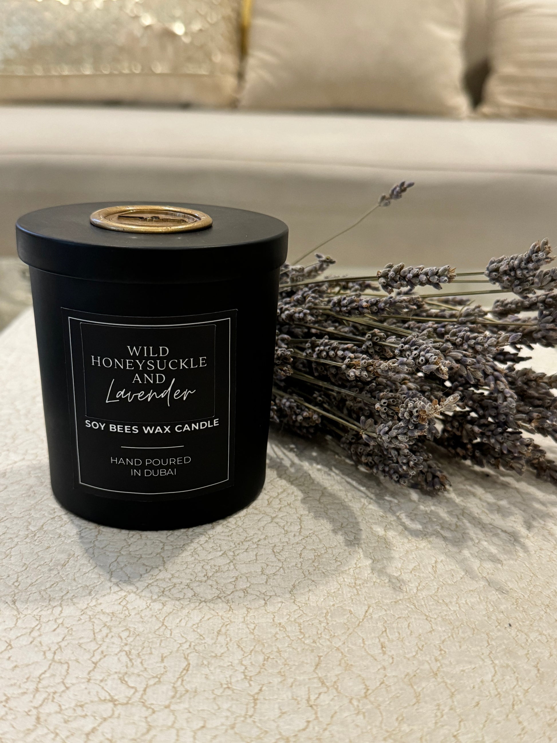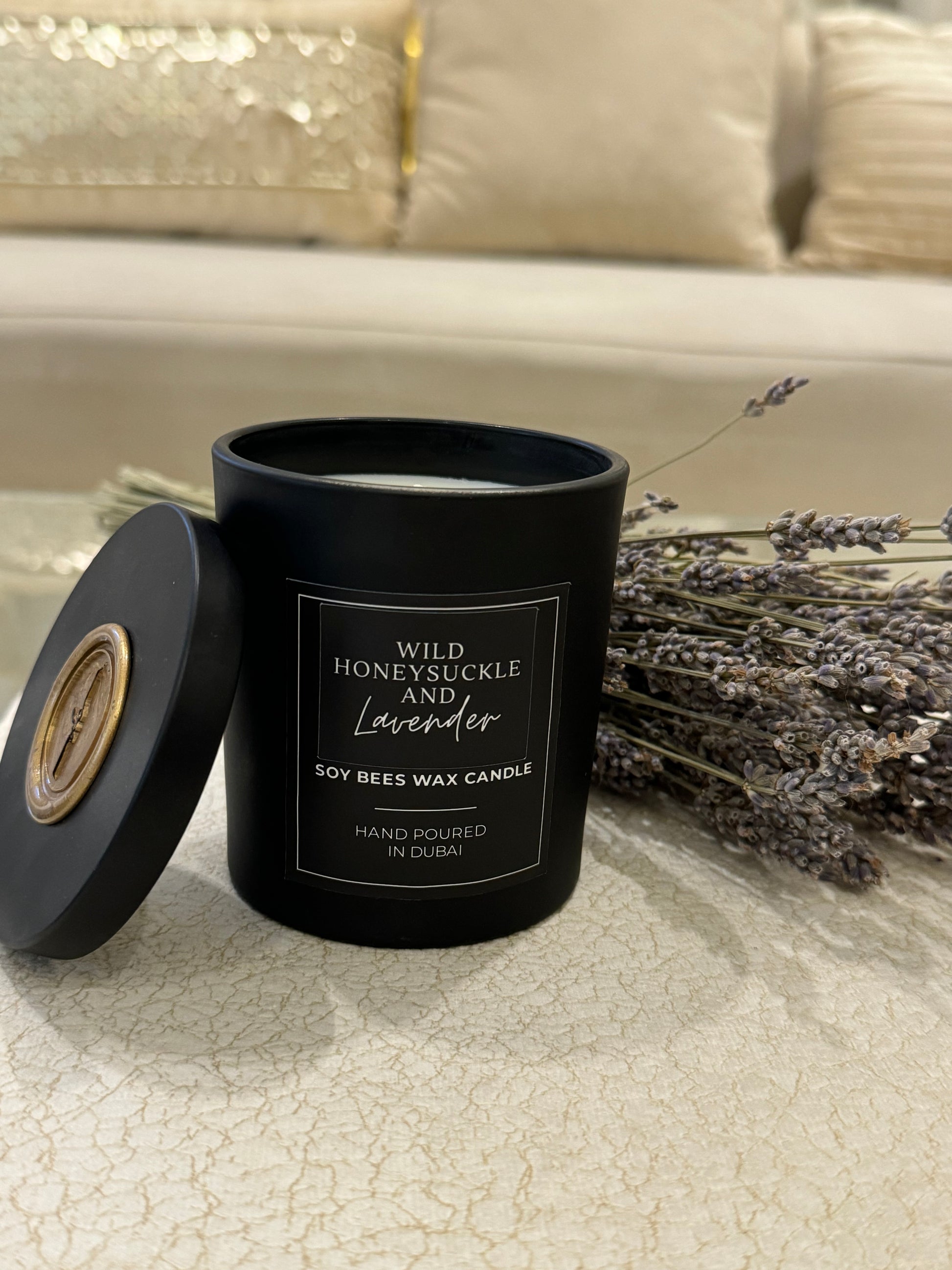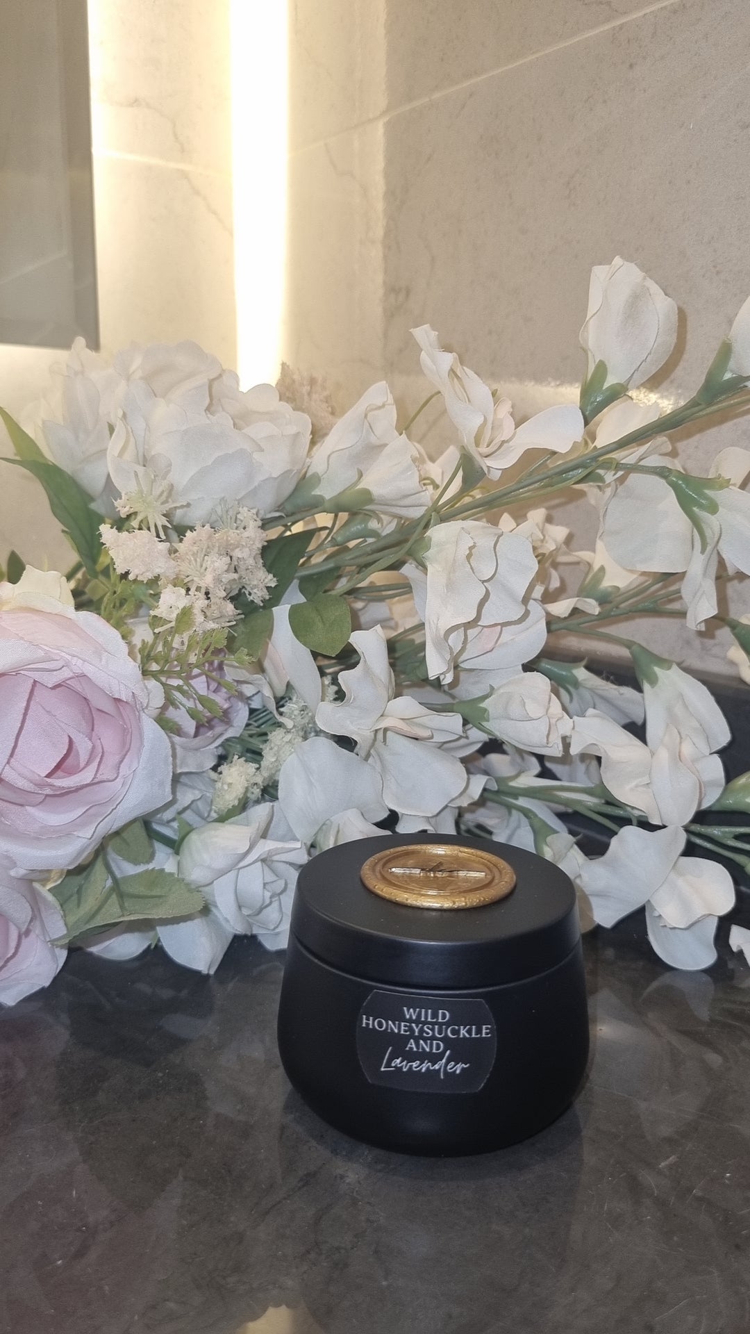 This candle harmonises the sweet, intoxicating aroma of wild honeysuckle blossoms with the calm, herbaceous scent of lavender. With each gentle flicker, it transports you to a tranquil oasis, where the delicate floral notes dance in the air, creating a soothing ambiance that rejuvenates the spirt and evokes a sense of a peace and tranquility. This fragrance is infused with natural essential oils, including sandalwood, spike lavender and sweet orange.